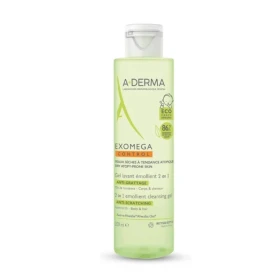 Το A-Derma Exomega Gel Lavant Emollient 2 en 1 ενυδατώνει από τη στιγμή του ντους το πολύ ξηρό ή με τάση ατοπίας δέρμα, αφήνοντας ένα διακριτικό υποαλλεργικό άρωμα.